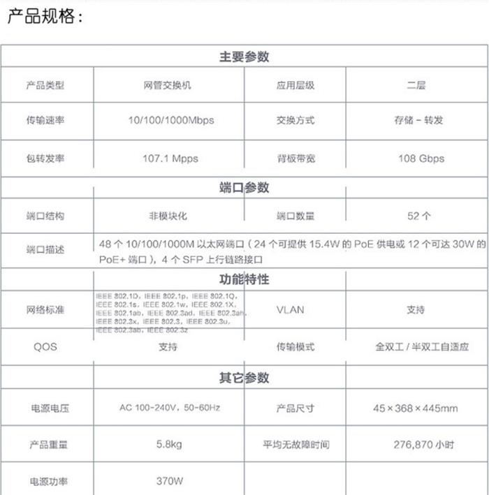 • 端口數(shù)量:48口