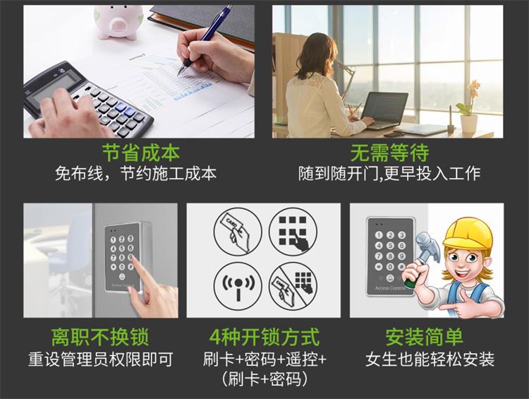 KOB無(wú)線門禁系統(tǒng)免布線刷卡鎖門禁一體機(jī)磁力鎖玻璃門密碼鎖套裝 三件套